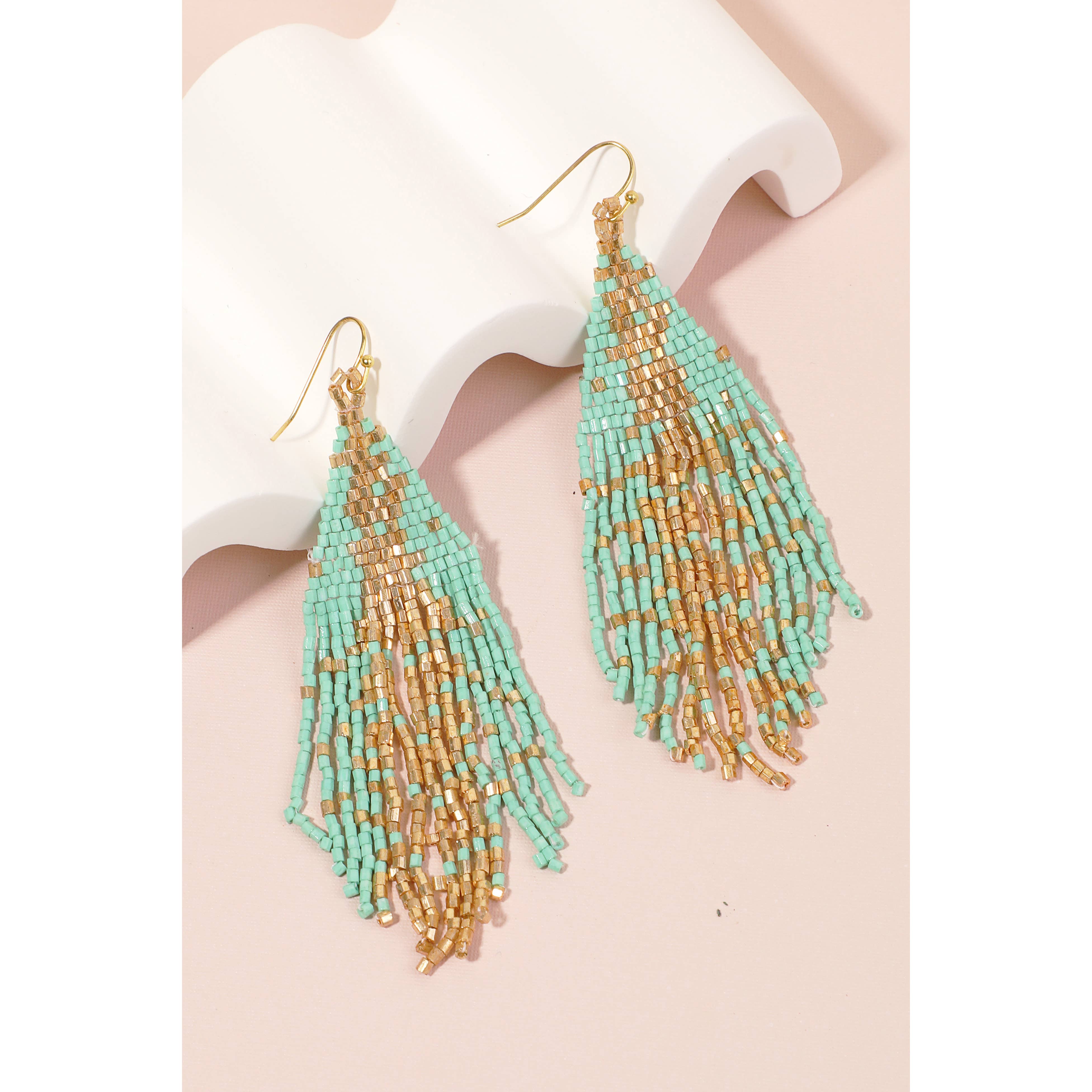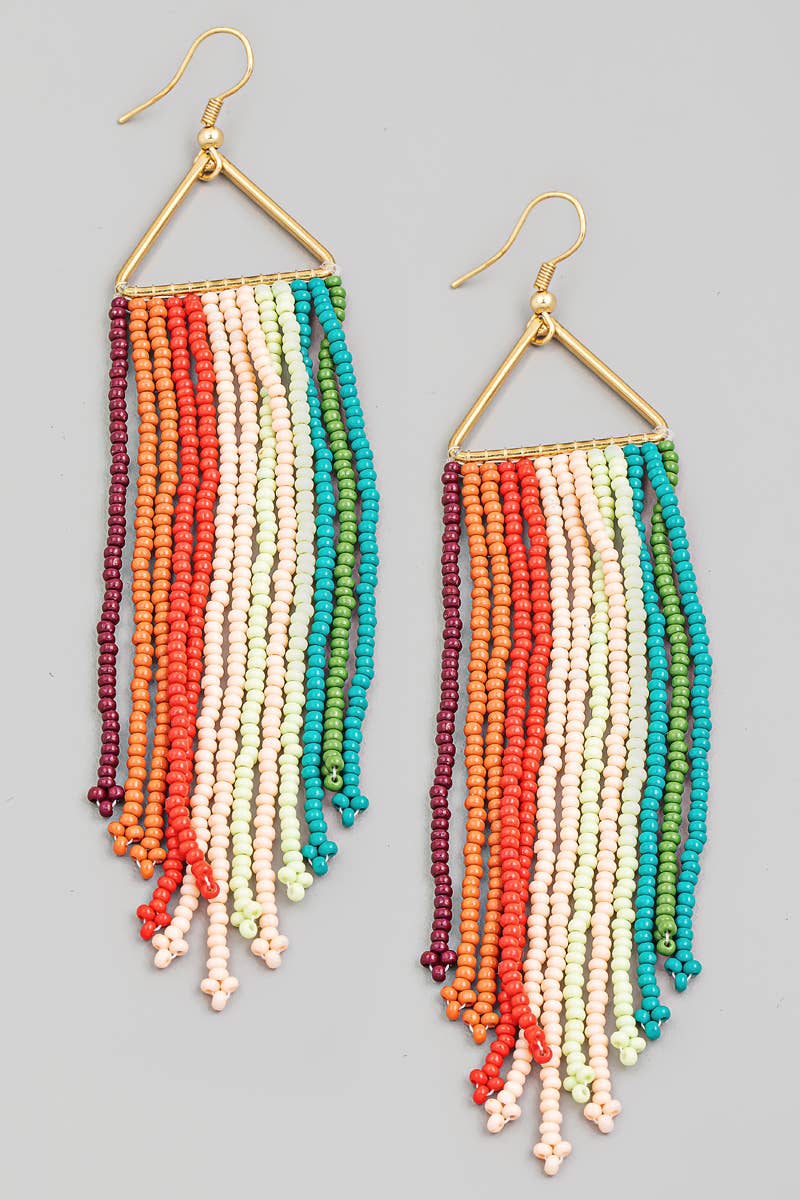 Boho Seed Beaded Triangular Fringe Earrings
