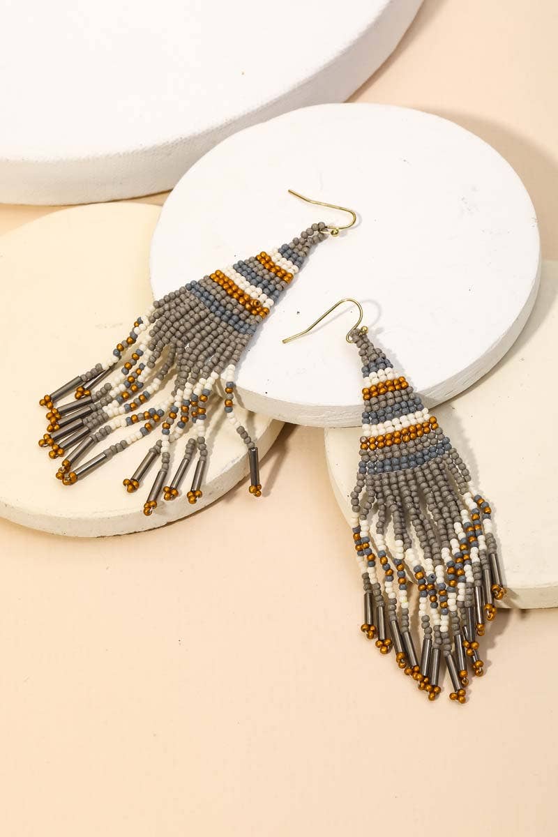 Seed Beaded Fringe Drop Earrings