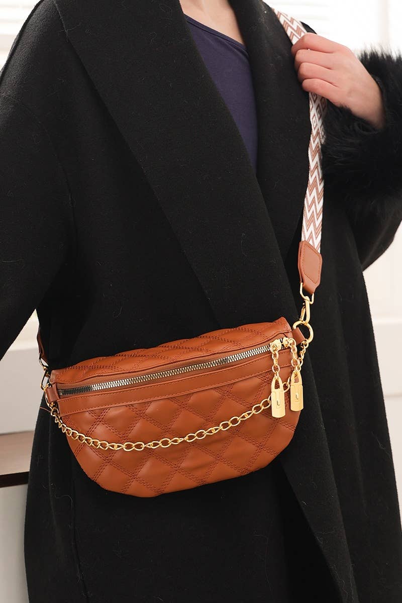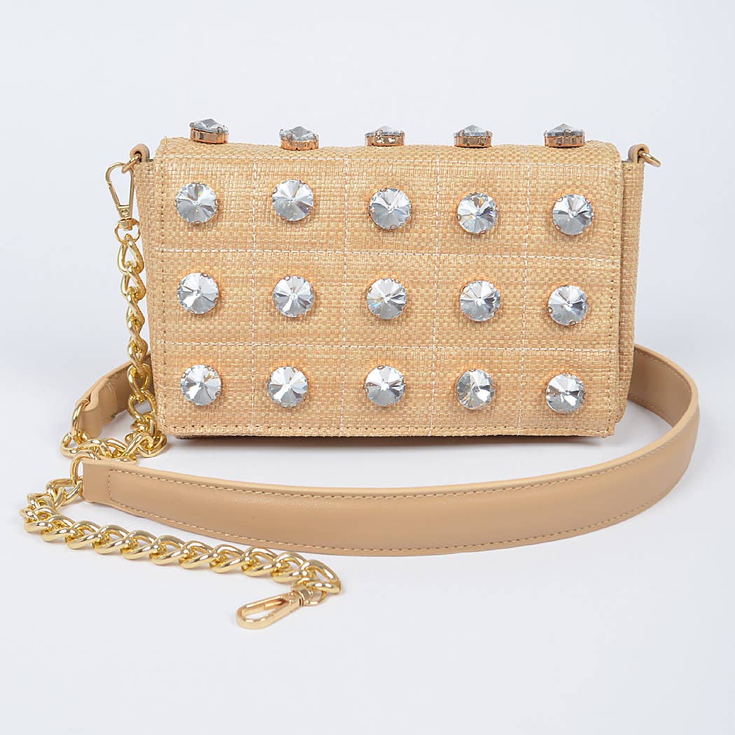 Linen Crossbody Bag W/Big Rhinestone