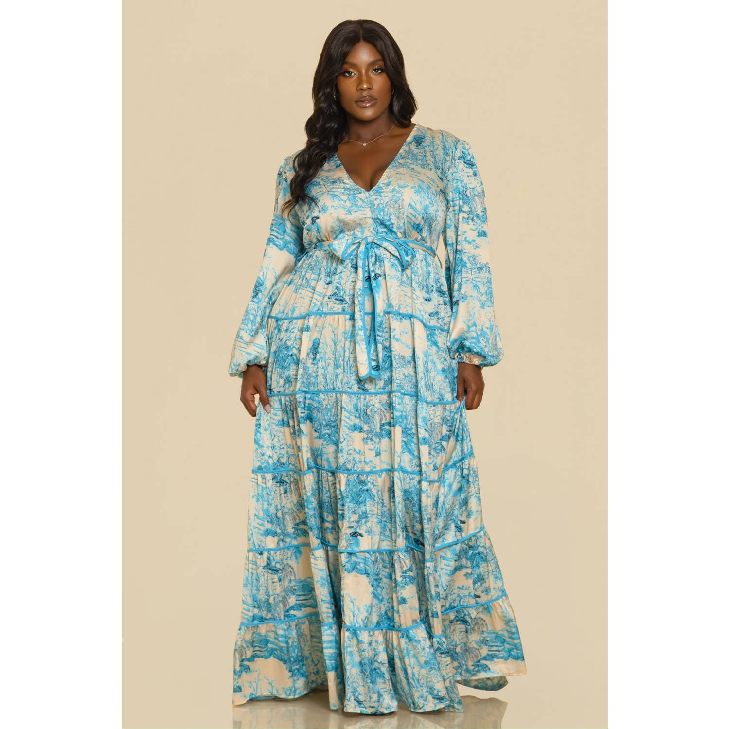 A93149 TIERED MAXI DRESS (BLK, BLUE)