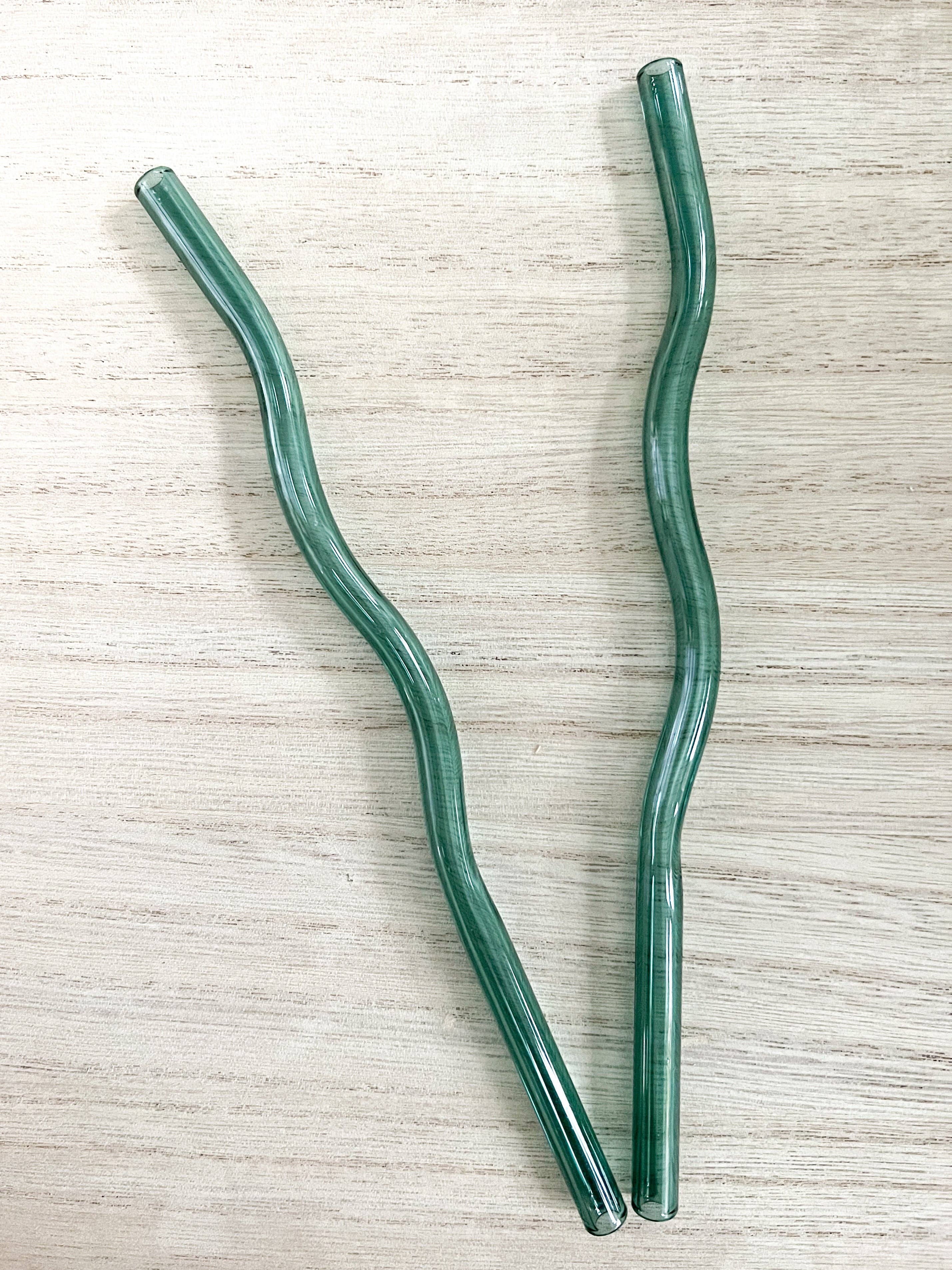 Teal Wavy Reusable Glass Drinking Straw