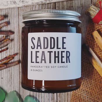 Leather Shop Soy Candle | 9 oz Amber Apothecary Jar