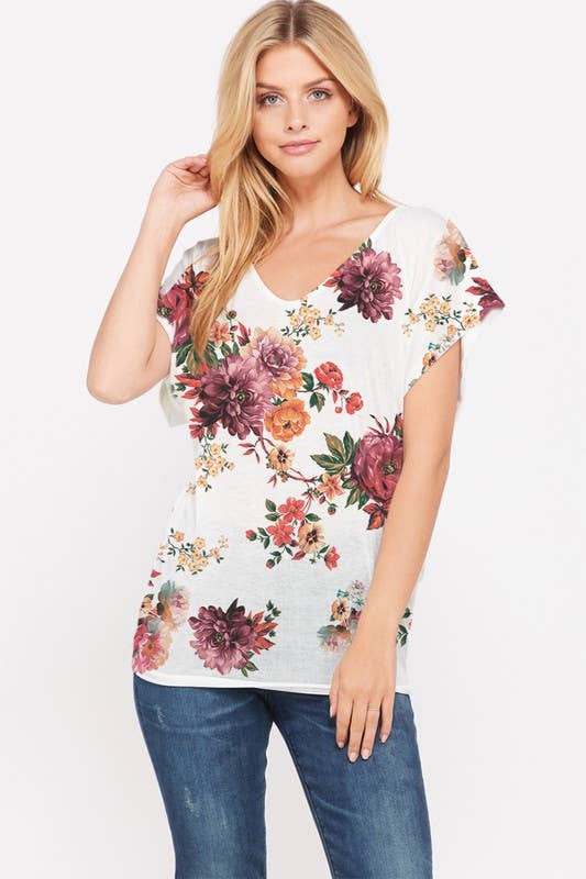 FLORAL SHORT SLEEVES TUNIC TOP 95%RAYON 5%SPANDEX MADE IN USA
