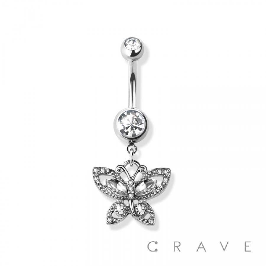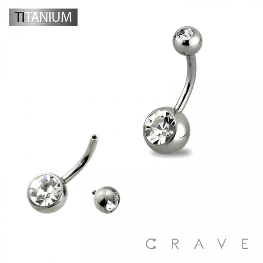 TITANIUM THREADLESS PUSH-IN BARBELL W/CZ BEZEL SET FRONT
