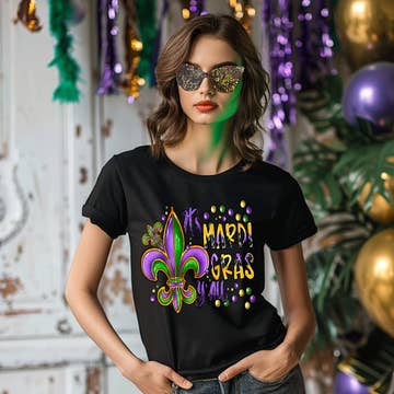 The "Mardi Gras Doodle Letters Tee" features a playful and artistic design with hand-drawn letters and elements that represent the vibrant and festive spirit of Mardi Gras. Doodle lettering can add a whimsical and creative touch to the tee, making it a unique and eye-catching choice for celebrating this lively event. Whether you're attending Mardi Gras parades and celebrations or just looking for a fashion statement that captures the fun and creative essence of the holiday, this tee is an excellent option. It's a stylish way to embrace the festive vibe of Mardi Gras and stand out in the crowd. 🎭🎨👕