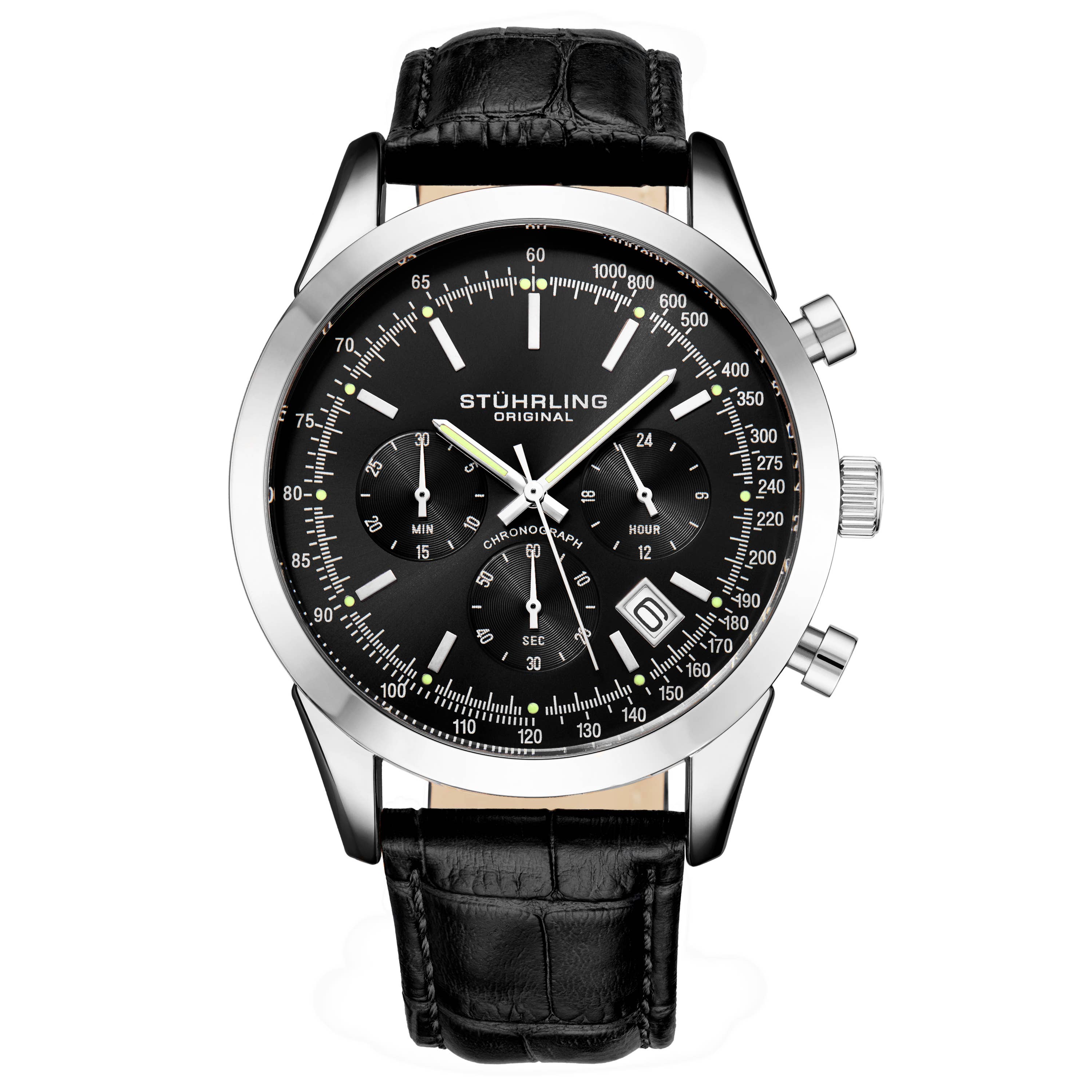 Hardened Alloy Case Precision Japanese Quartz Movement Full-Function Chronograph Non-Glare Scratch Resistant Mineral Crystal Logo-Engraved Stainless Steel Caseback Polished Alloy Bracelet Logo-Engraved Stainless Steel Push-Button Deployment Clasp Luminous Hands Date Display 42mm Case Diameter 5ATM Water Resistance