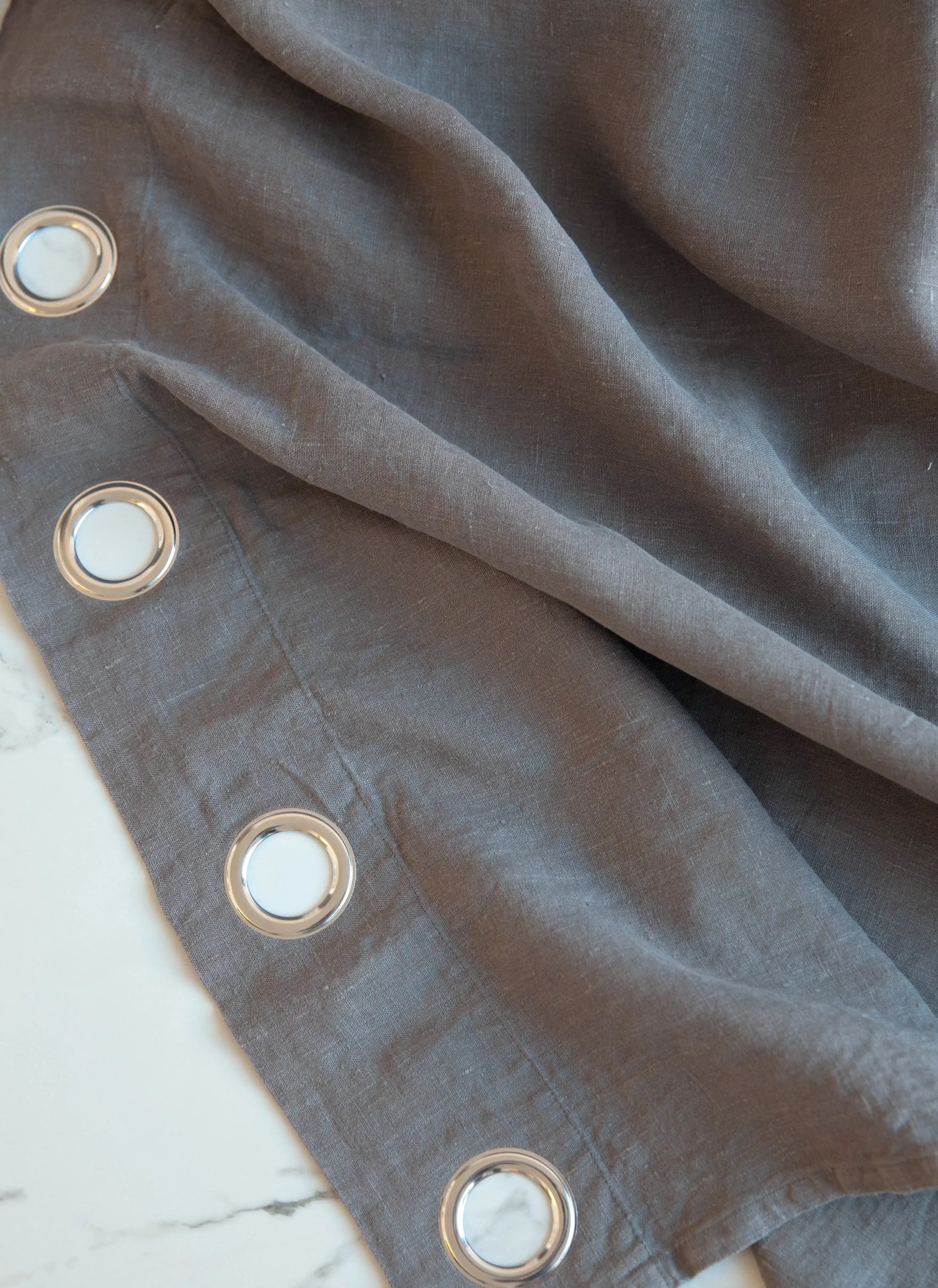 Wholesale Custom Herringbone Wool Curtains with Genuine Leather Tabs and Brass Buttons