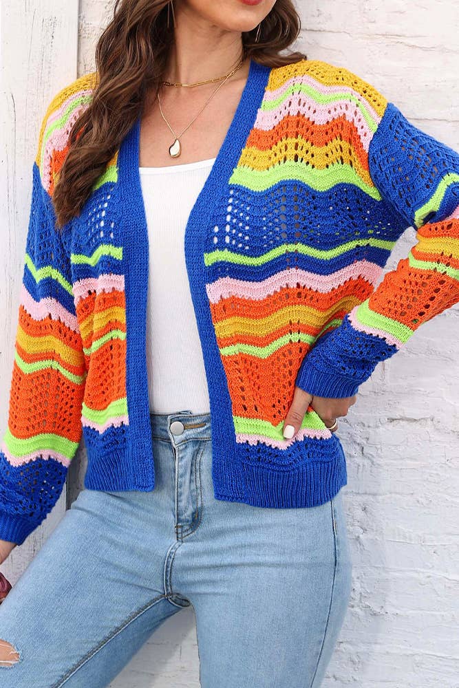 Knitted Rainbow Bubble Stitch Cardigan