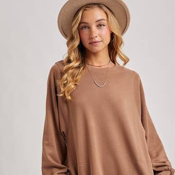 ROUND NECK LONG SLEEVE RIBBED CONTRAST FRENCH TERRY HI-LO MINI DRESS W/ FRONT POCKETS - Round neck design for a classic, comfortable fit - Ribbed contrast detailing adds texture and style - Hi-lo hemline creates a modern, trendy silhouette - Convenient front pockets for practicality STYLE MEASUREMENTS (SIZE SMALL) - Total Length 37" - Shoulder 20 1/2" - Bust 20" - Hip 21" - Sleeve Length 22 1/2" 85%COTTON, 15%POLYESTER | CONT:70%COTTON, 25%POLYESTER, 5%SPANDEX MODEL IS 5'10" | BUST 34" | WAIST 24" | HIPS 35" WEARING SIZE S