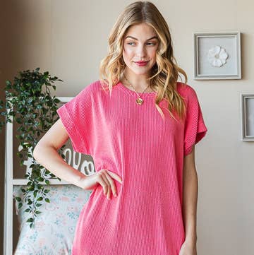Ribbed Contrast French Terry Hi-Lo Mini Dress - 27865D