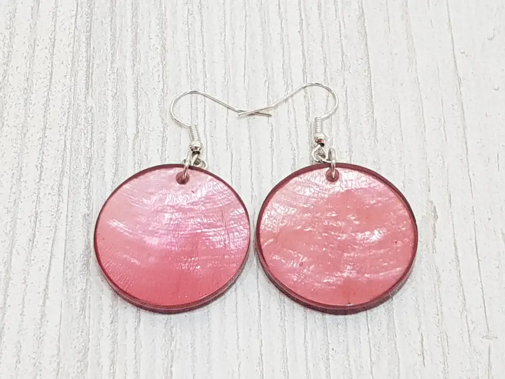 High-quality earrings made from genuine capiz shells Our earrings made from genuine capiz shells combine the best materials with the highest standards of quality and design. This special piece of jewelry is created through strict processing guidelines and continuous quality controls. Lovingly handcrafted sustainably and fairly by Gloria-Maris. Material: Capiz mussel (Placuna placenta), coated with synthetic resin. Metal parts: Nickel-free, cadmium-free, lead-free.