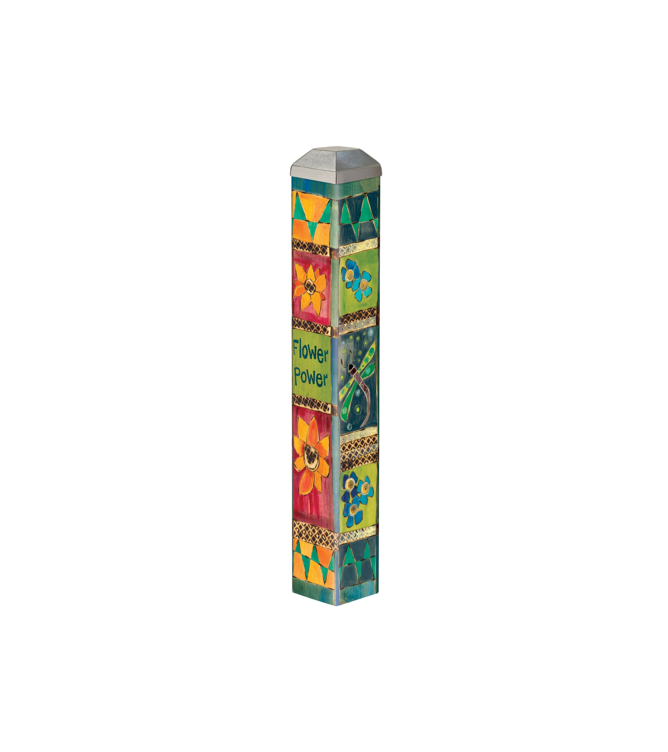 A Studio M exclusive, Mini Art Poles™ are created similarly to our popular standard-sized poles, but are the perfect size for gifting. Whether for a friend who needs a smile or a pot that needs a pop of color, Mini Art Poles will do the trick! A stake is included for easy planting. Proudly made in the USA. Dimensions: 10" (1.5" x 1.5") U.S. Patents 9,058,756 | 9,633,586 | 9,990,870