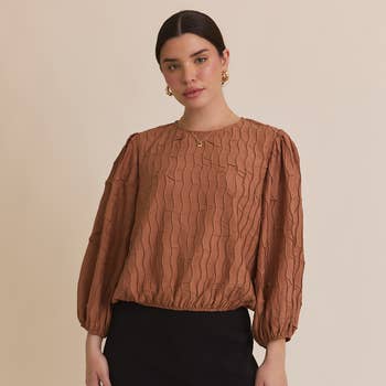 Wholesale CT9016-Pleated Construction Mock Neckline Top