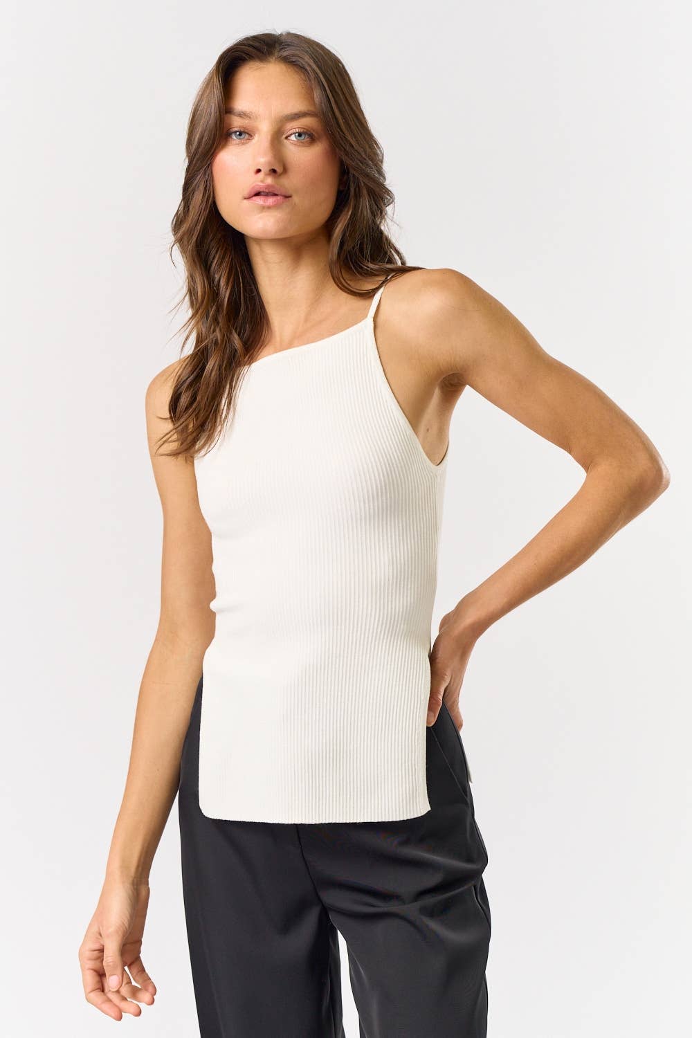 51919 - ONE SHOULDER CHAIN HIGH NECK TANK TOP