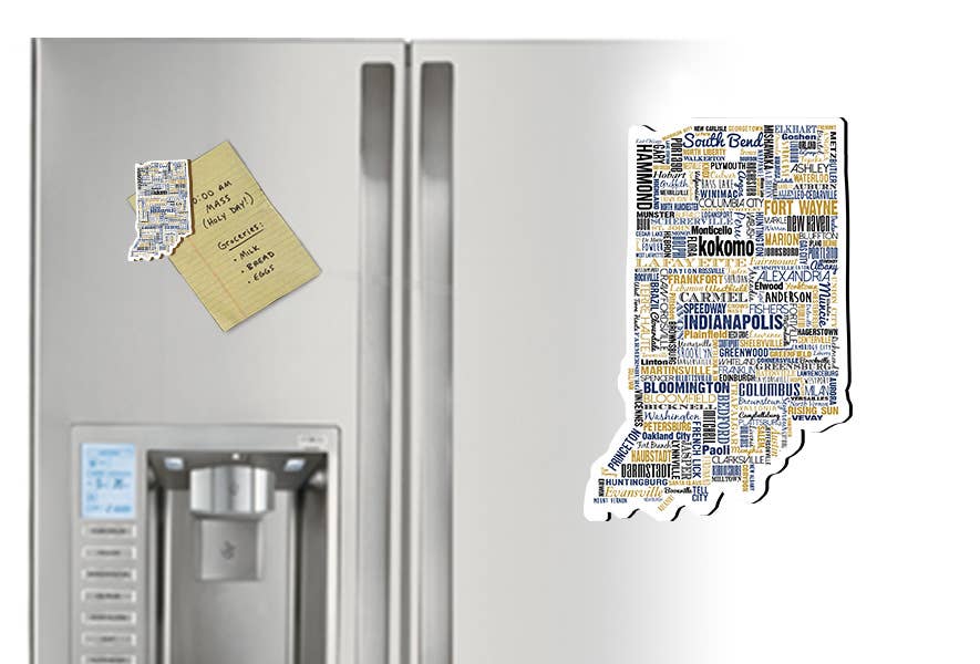The perfect Christmas gift to commemorate a visit for years to come! Designed and imprinted in our shops in Steubenville, OH, our laser-cut wood ornaments are cut to the shape of your state and feature the names of geographically accurate cities. This ornament measures approximately 3"W x 5"H and is 1/8" thick. They come with a pre-tied satin ribbon* for hanging. The perfect holiday gift for anyone, in any state! *Ribbon color will vary Text: indiana! Albany albion alexandria anderson angola Arcadia Argos attica auburn aurora Austin avilla avon bargersville batesville bedford beech grove berne bicknell bloomington bloomsfield bluffton Boonville bourbon brazil Bremen Bristol brooklyn Brookville brownsburg Brownstown butler cambridge city carmel cedar lake centerville chandler charlestown chesterfield chesterton churubusco cicero clarksville Clinton Cloverdale columbia city columbus connersville corydon covington crawfordsville Crown Point Culver Cumberland dale Daleville danville