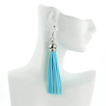 These beautiful Boho Style Tassel Earrings are a must! These feature 4 layers of tassels on a hook. Great piece for all seasons! These are made of cotton thread and the hook of stainless steel. These come packaged on an earring card and in plastic.