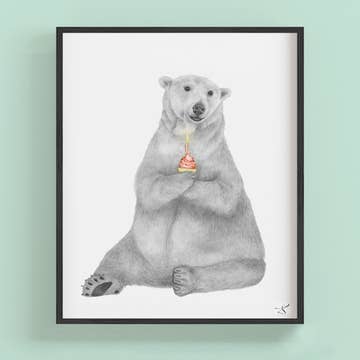 8" x 8" fine art print of a polar bear sleeping sweetly underneath the northern lights — from Cynthia Oswald’s Dreaming in the Wild collection. A peaceful piece for a nursery, children’s space, or any corner of the home that needs a little calm. Printed on 100% recycled uncoated stock.