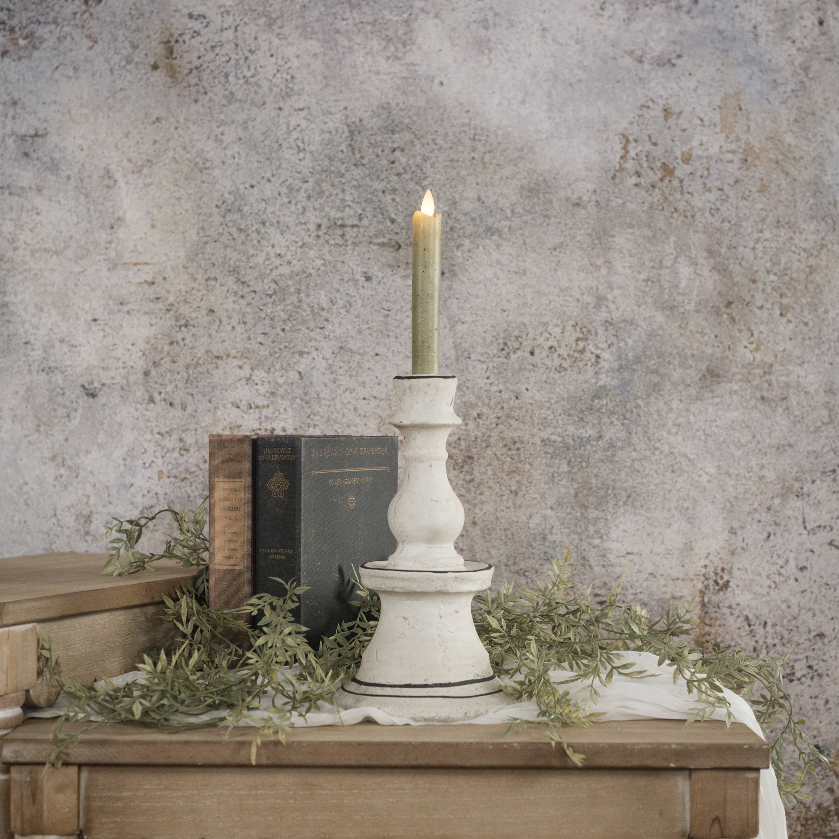 This white ish concrete molded gothic architecture altar holds our hex tea lights and will age interestingly with smoke. It's just a very beautiful object. I want to offer it in black and grey but I don't have a consistent supplier for those colours to be consistent and would be mixing per object. So, if you are interested in grey or black- it is possible to make- I can do custom for the same price as the white.