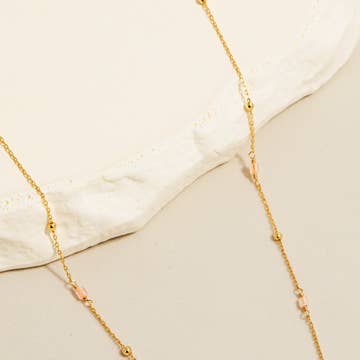 Playful and symbolic, this necklace features a gold-plated chain dotted with multicolor Japanese beads , precious stones and small charms. Each detail feels intentionally placed, creating a piece that moves lightly and tells its own story with every wear.