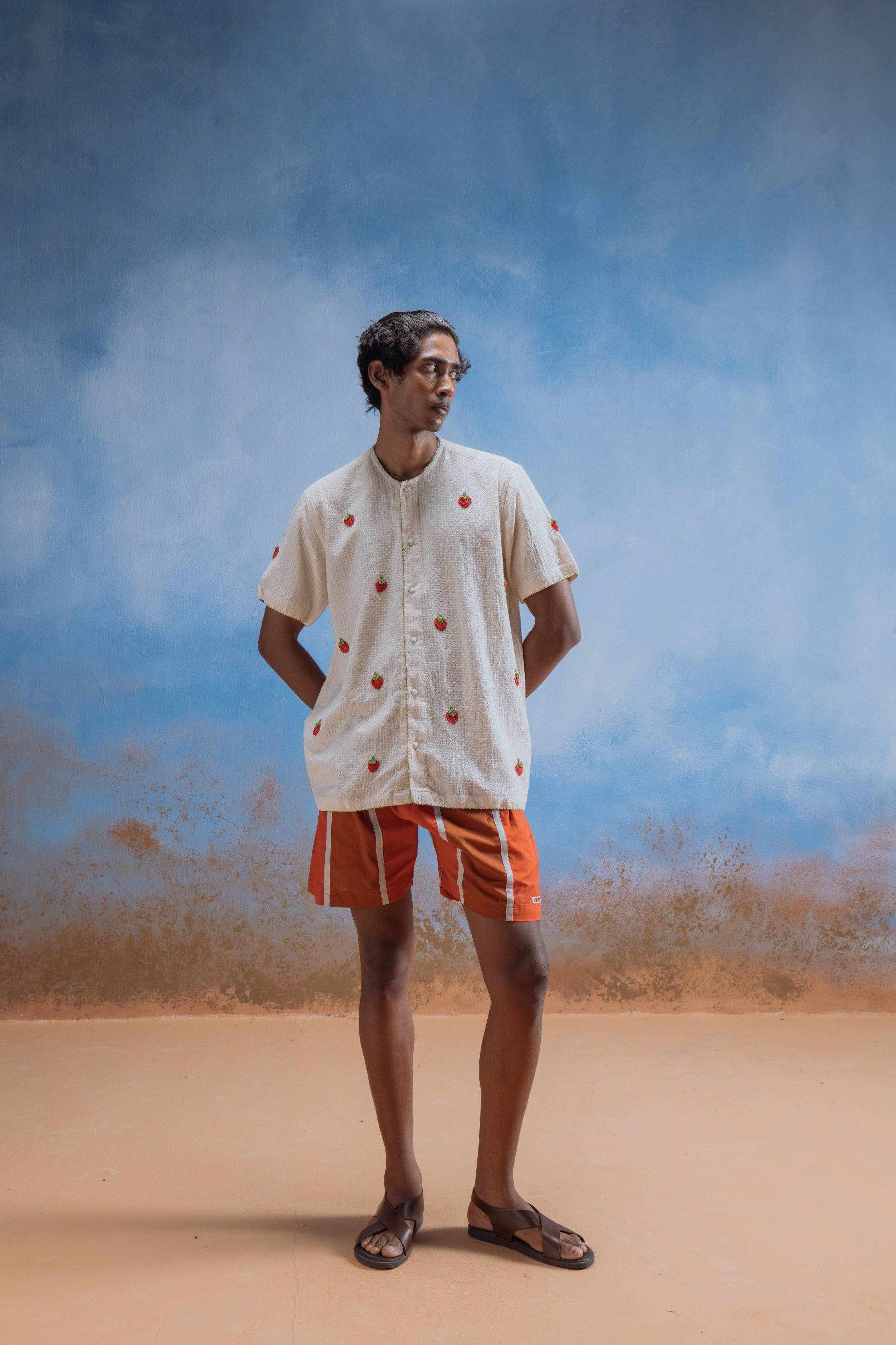 Intricately hand-embroidered with meticulous edging along the shirt. Exclusively crafted in rural India, each piece is a limited edition work of art. Adorned with embroidered jaal. Offers a comfortable, relaxed fit. Embrace the natural charm of handcrafted textiles with subtle variations in weave, embroidery, and color, highlighting their authenticity. Enhance your outfit with denim, shorts, stylish sunglasses, and sneakers, seamlessly blending classic and modern styles.