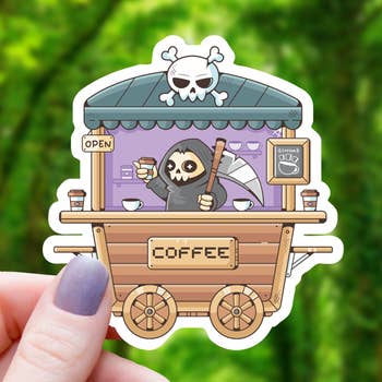 Death Before Decaf Metal Skull Cute Slaps Bubble-Free Sticker. When you're cute af and like coffee but also metal af.3"x1.5" vinyl stickersDon't forget to clean the surface before applying the sticker.