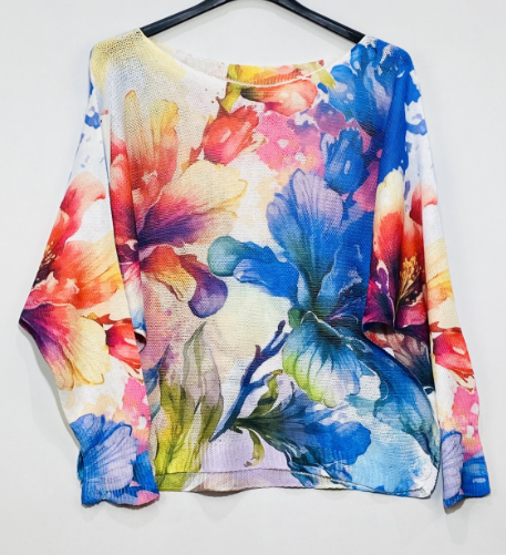 CJEW White Gold Jewels Round Knit Printed Sweater One Size Made in Italy 62% Polyester 33% Viscose 5% Elastane