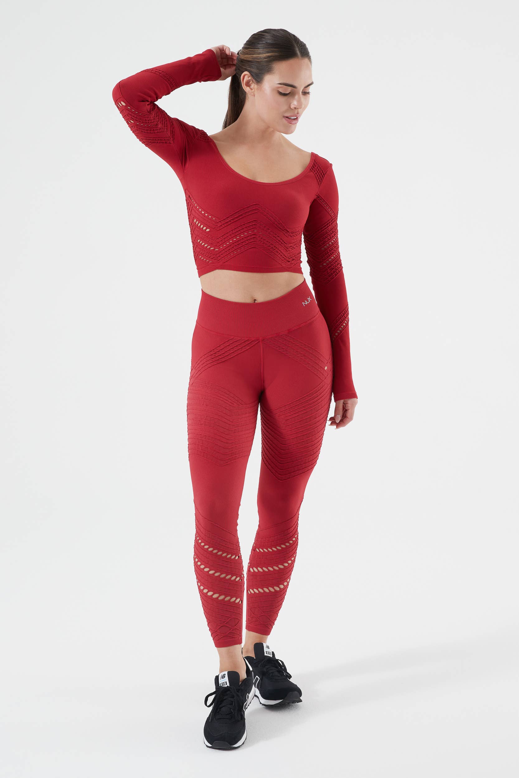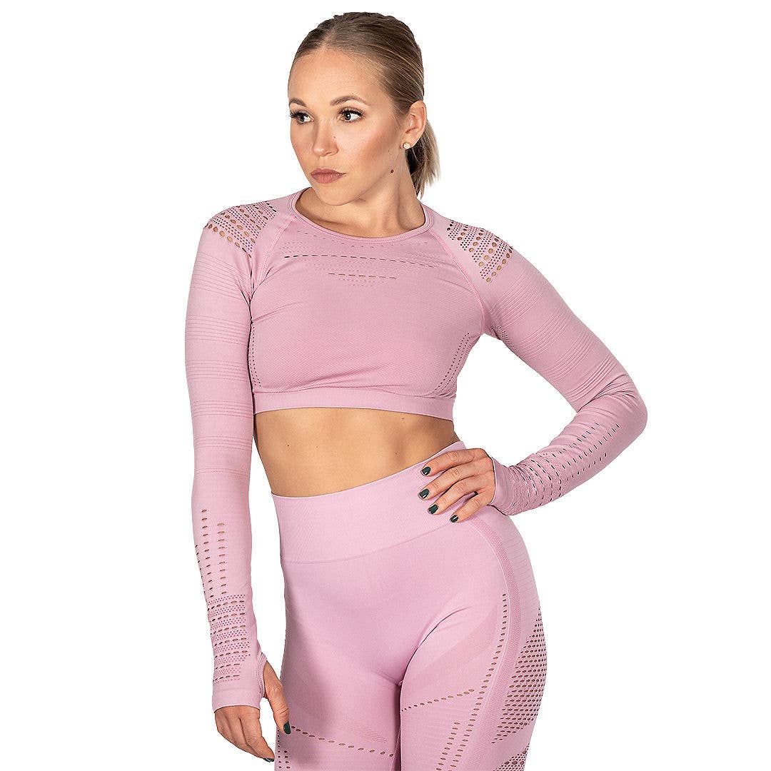 Strength, meet style. Our newest long-sleeve top was inspired by ballet and barre. Students of these art forms are known for their daintiness and femininity, but don’t be fooled - both ballet and barre take incredible strength and flexibility. The Ballet Barre Long Sleeve was designed to wear year-round thanks to our buttery-soft and breathable fabric. Use it as sun protection in the summer, and as an extra layer in the winter. This long sleeve top is cropped for flexibility, and features feminine details including the mid-back peep hole and bowtie in the back. 79% Recycled Polyester, 21% Spandex Antimicrobial‚ Sweat Wicking, 4-Way Stretch Crafted with technical fabric that's breathable and sweat-wicking, to keep your skin cool during hot and sweaty workouts. Eco-friendly, non-toxic dyeing process that produces fade-free, bleed-free vibrant color with no white on stretching. Machine wash cold, air dry
