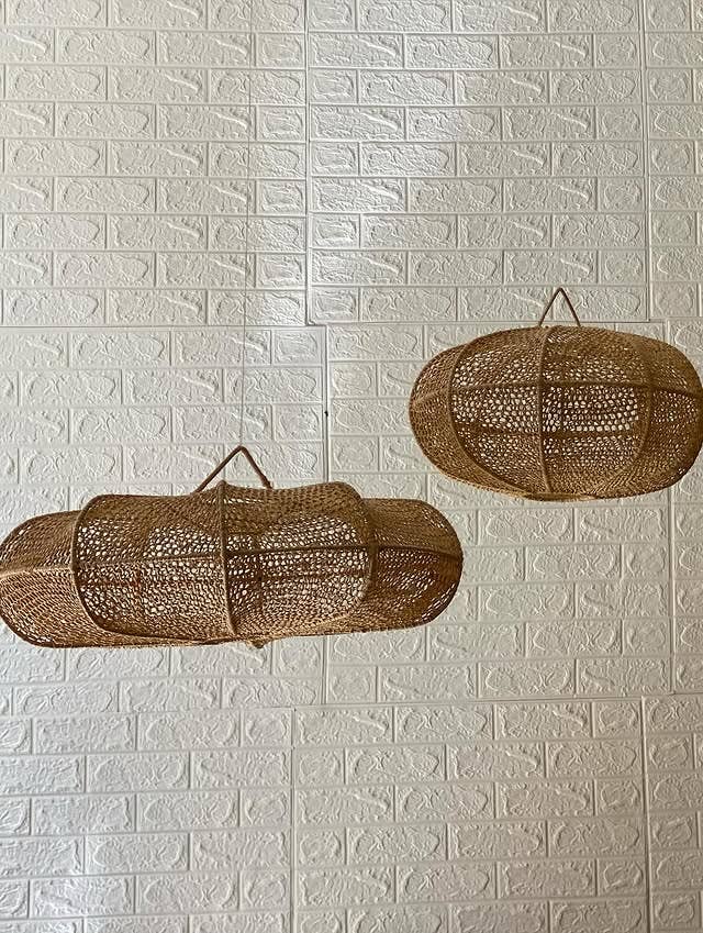 This palm leaf suspension is made from raw and authentic material, creating a very captivating bohemian atmosphere. Entirely handmade, this natural fiber suspension is suspended from the ceiling thanks to its handle. Soft tones and fringes add a warm and original touch to your space. This pendant lamp can be installed indoors or protected outdoors, and it will add a trendy touch to any room in your home. Sold without an electrical system, it simply fits on an existing electrical assembly and is very light. ATTENTION: Make sure the bulb does not touch the straw. It is recommended to use an LED bulb, which does not emit heat.