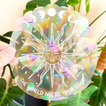 Pet Memorial Rainbow Maker Suncatcher – Holographic Window Decal by Chelzart A gentle way to honor the pets we’ve loved and lost. This pet memorial suncatcher decal is designed with a comforting paw print and soft rainbow hues, printed on holographic prism film that reflects real rainbows across your space when placed in direct sunlight. A beautiful way to bring light, warmth, and memory into a room. Perfect for those who want to keep their furry friend’s spirit close or to give as a thoughtful sympathy gift to someone grieving a beloved pet. Dog Angel Decal Details: • 3.6" W x 5.1 H • Removable and reusable • No sticky residue left behind • Best on clean windows with direct sunlight • Designed with love by Chelzart • Packaged with application instructions and sealed for protection Please note: Colors shift based on light and angle. Ships with white protective backing. Just peel, stick, and let the love shine on.
