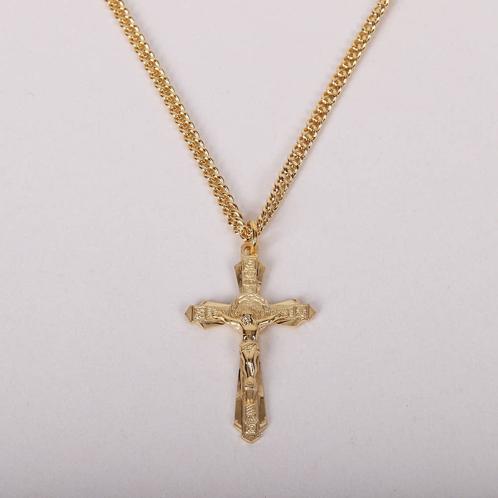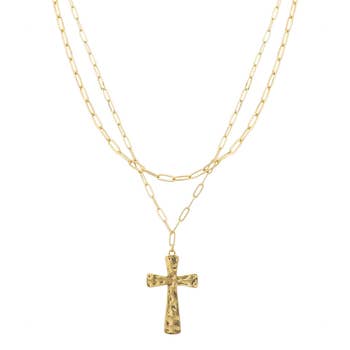Unleash your inner strength with the Ophelia Cross Necklace. This stunning necklace features a Tiger Eye Stone cross, symbolizing courage and protection. Elevate your style and feel empowered with this unique and meaningful accessory. * 18k Gold Plated Over Stainless Steel * 19" + 2" Ext * 1.2" Pendant * Hypoallergenic * Water & Tarnish Resistant