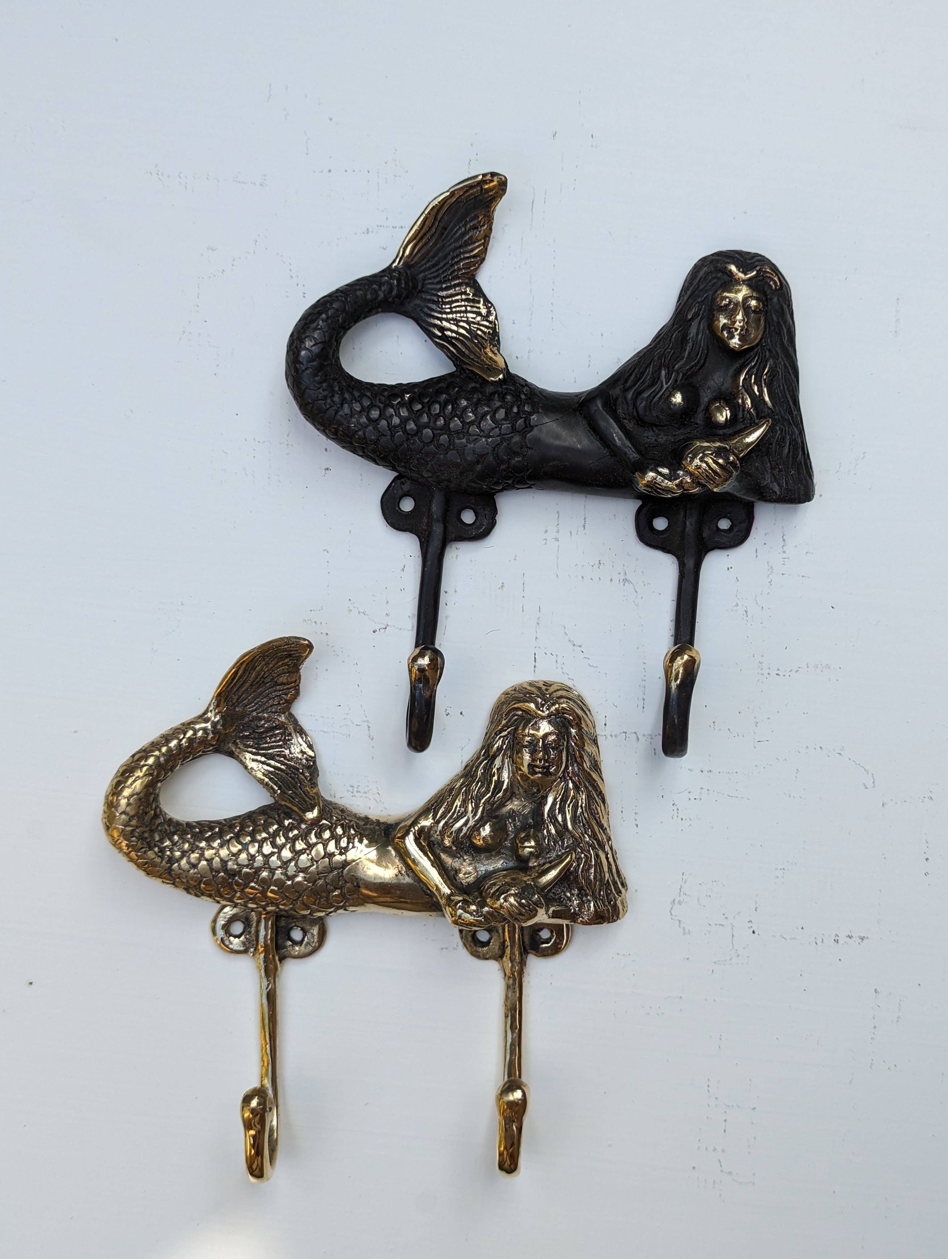 Create your own stylish and sturdy shelf with this set of heavy duty cast iron swimming mermaid wall shelf brackets. The classic mermaid design gives them an open and airy elegance and brings a classic touch of coastal character to any decor setting. The distressed bronze finish gives them a beautiful weathered look that works well with rustic to modern beach decor styles. Pre-drilled mounting holes offer quick and easy installation in any room, hardware is not included. Use this set of 7.375 inch Long, 6.375 inch high, 1.5 inch wide cast iron brackets as decorative accents under kitchen cupboards, bar countertops, fireplace surrounds, to create a shelf above a window or you can use them as planter hangers and bring a sense of nature to your indoor or outdoor living space.