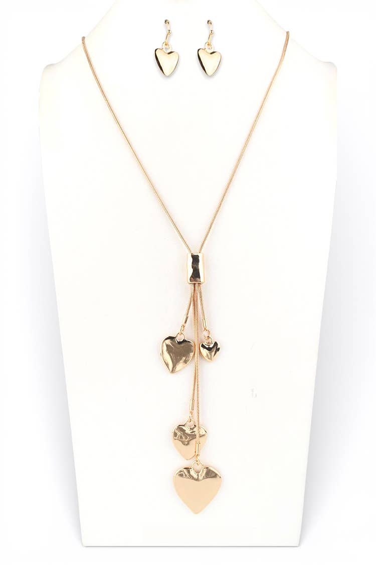 FR2872 Patina 3-Layered Hammered Heart Pendant Necklace Set