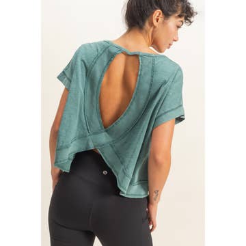 Overlap Open Back Reverse Stitched Crop Top - Short sleeves - Crew neck - Overlap open back - Reverse stitch - Cropped silhouette - Effortless comfort and easy to layer - Relaxed fit - slouchy silhouette