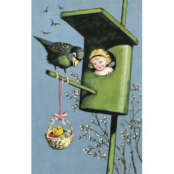 A pretty simple card with a vintage style for all retro lovers. Child in a birdhouse and bird on its perch waiting for the chicks to hatch. Dimensions: 9.6 x 15 cm. Paper: 265 g of high quality.