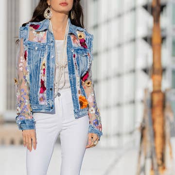 Handmade Wholesale Pearl-Studded “BRIDE” Denim Jackets