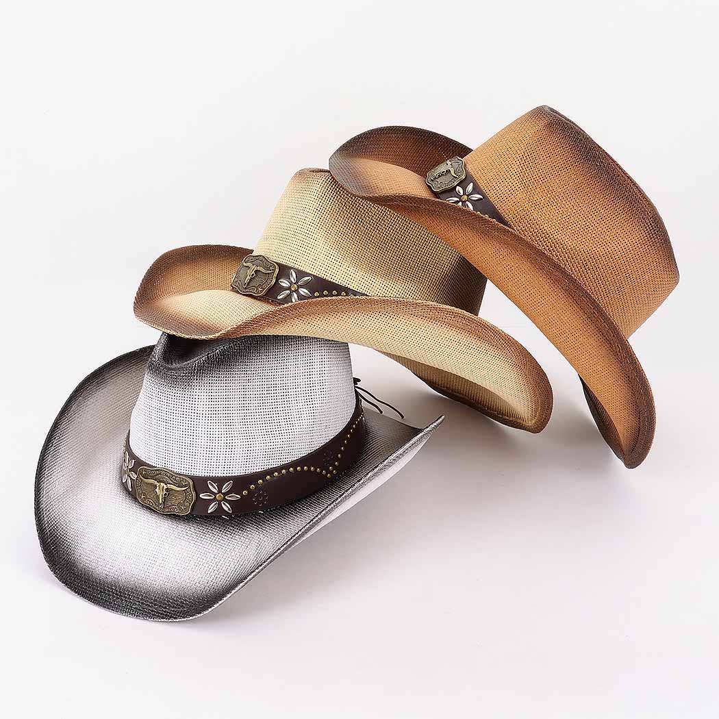 Wholesale Pink Bull Motif Faux Suede Cowgirl Hat Western Cowboy Ranger