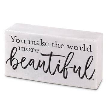 An elevated look to classic Julie Abbott artwork. 1" Solid acrylic block with art design printed on the back. These sit perfectly on their own and make a great gift, an addition to a desk or bookcase. Display on their own or as a collection. 4" x 6" x 1"