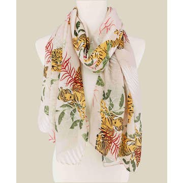 Description "Jungle Gathering" captures the serene daydreams of a warm and tranquil summer afternoon. The artwork portrays anthropomorphized tigers and leopards sitting together in harmony, creating an imaginative and delightful scene. The incorporation of animals and natural elements enhances its visual appeal. With different colors featured on each side, it becomes a versatile accessory. Crafted with exceptional attention to detail, the scarf also boasts hand-rolled edges that add a luxurious finish. Product Details: 100% silk 35"W x 35"L Hand-rolled edges with hand stitching finishing Lovingly packaged in a beautiful JZ presentation box *Due to the handmade nature of the edges, the measurement may vary slightly. Care: Fill a sink with cold water and mild detergent. Submerge scarf and swish for a minute. Rinse with cold water and press gently to remove excess water. Lay on towel, roll to remove remaining water. Hang or lay flat to air-dry away from sunlight and heat. Profession