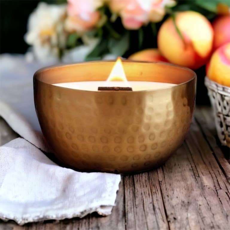A sophisticated take on clean linens. Fresh clean cotton & coastal notes blend with undertones of peaceful lavender. Our solid brass bowls have been hand drummed for our collections, making them a beautiful piece of art to be displayed well after your candle has been enjoyed. Toxin Free/ Carcinogen Free/ Hand Poured/ Pure Soy Base/ Crackling Wood Wick/ Our solid brass bowl can be repurposed after you enjoy one of our long burning hand poured candle. Summer/Valentines Day/ Birthday/Mothers Day/Anniversary/ friend/ Vacation/Teacher Appreciation/Home Decor/Luxury Candles/Father's Day/Soy Wax