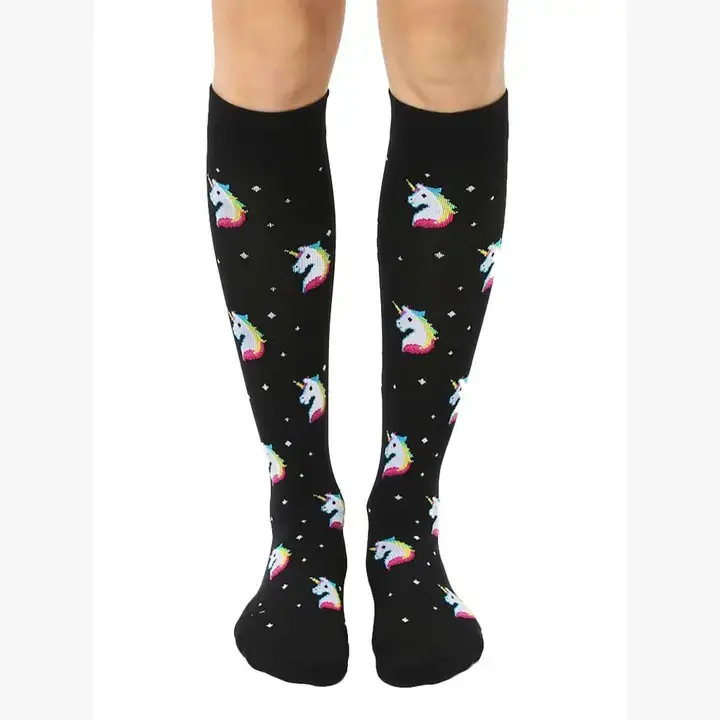Compression Socks (15-20mmHg) - Mystic Unicorns - Black