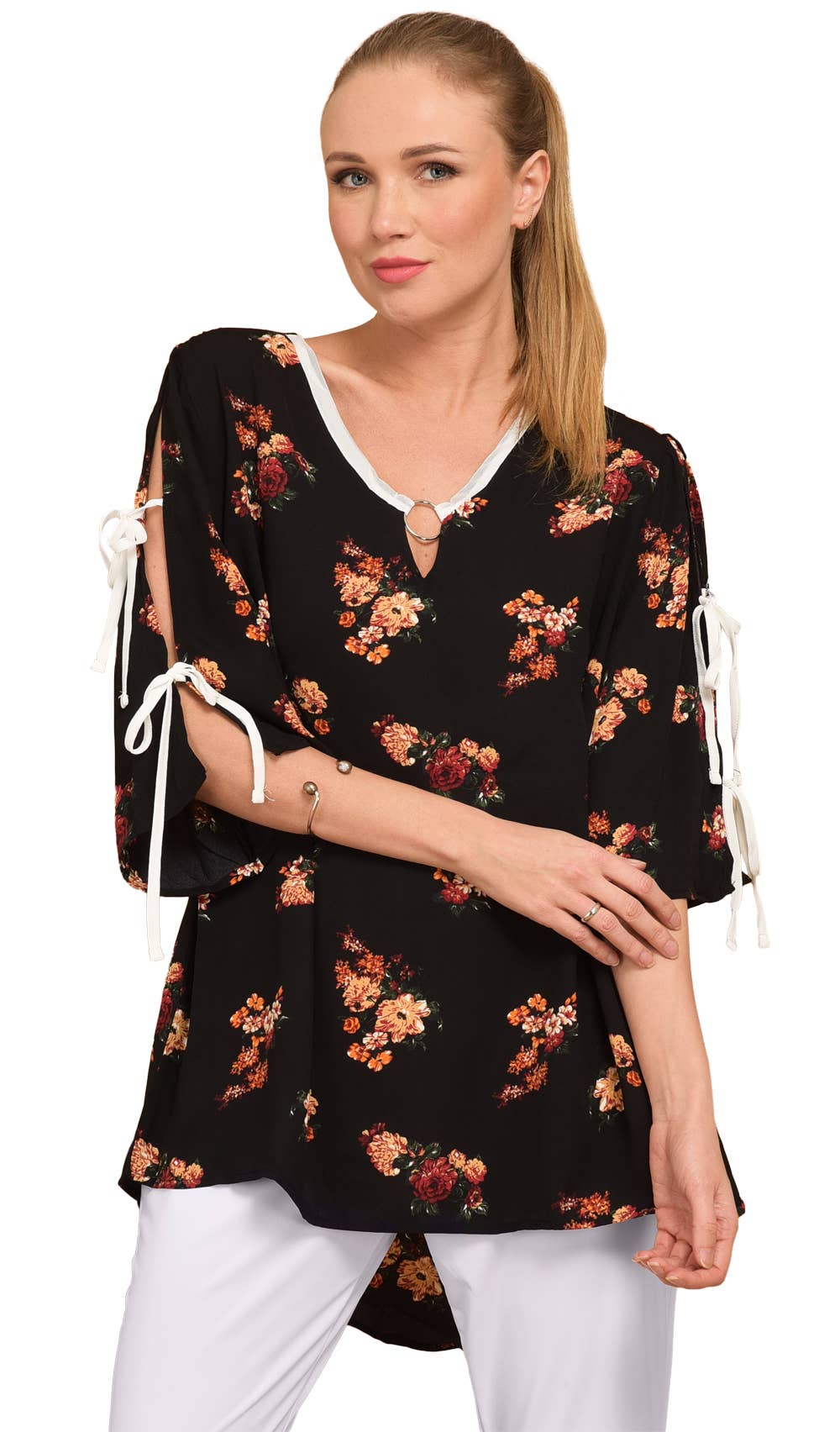 Plus-size fluid pants with Maya print (B231&BLACK)