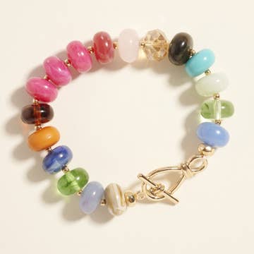 • Size : 0.6" H • Stretchable • Chunky disc bead stretch bracelet featuring a mix of marbled and translucent tones. A bold, comfortable accessory perfect for casual or boho-inspired looks. Easy to wear and effortlessly stylish. • Lead and Nickel Compliant