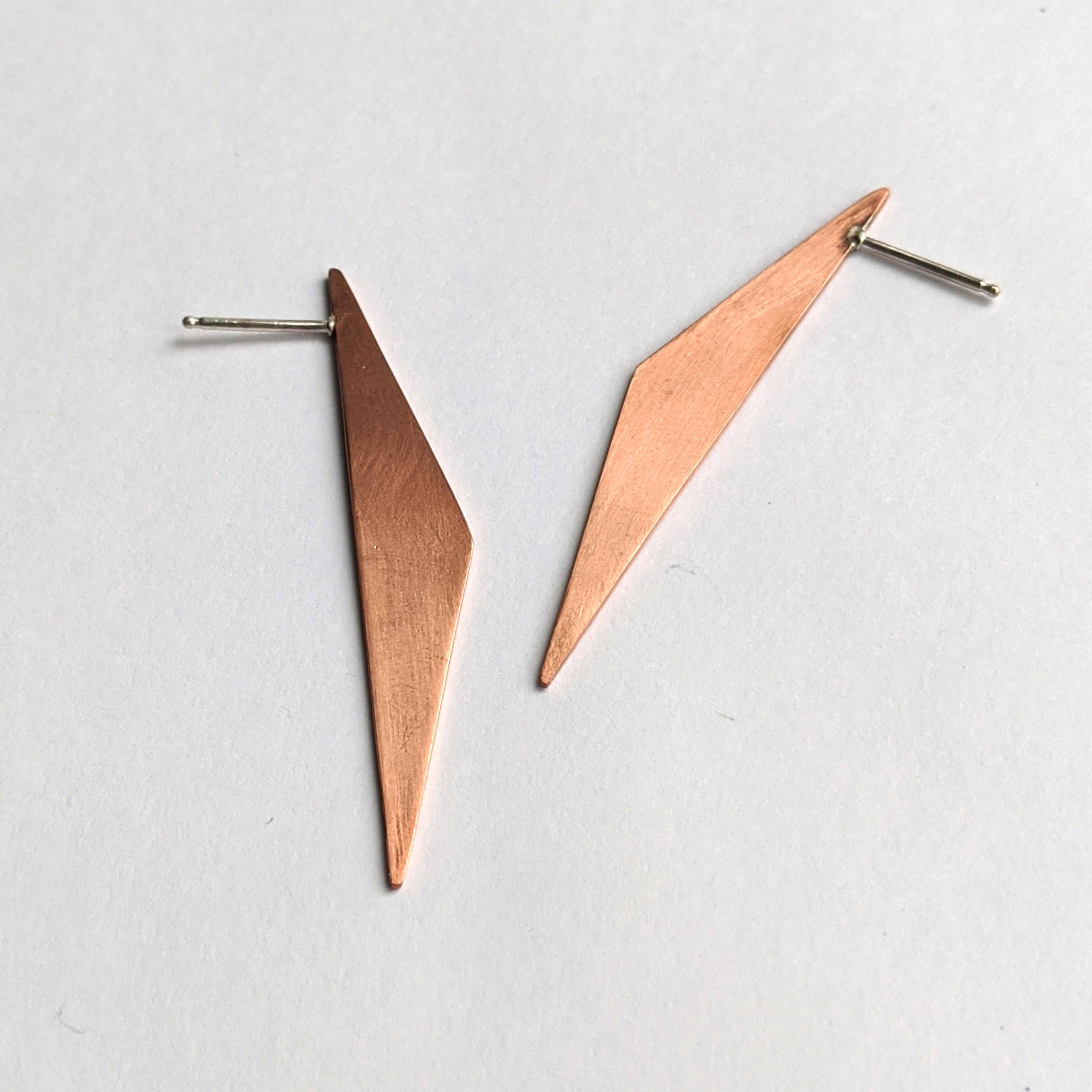 Sterling silver pointed earrings. Handmade jewelry, jewelry, brass jewelry, silver jewelry, sterling silver, gold plated, handmade, handmade gifts, fair trade, bohemian, boho, fashion jewelry, fashion, slow fashion, ethical, India, Thailand, artisan, artisan made, necklace, bracelet, ring, earring, anklet, ear cuff, ear climber, ear jacket, spinning ring, spinner ring, stacking ring, stacker ring, holiday gift, Christmas gift, gift, unique jewelry, boho jewelry, trendy jewelry