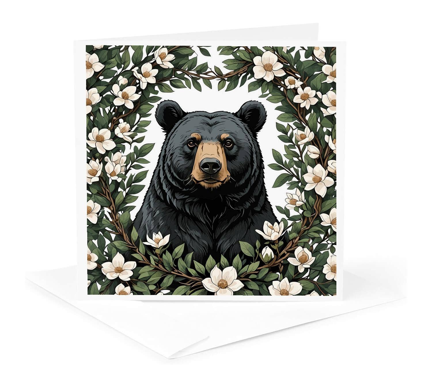 Single greeting card featuring a reproduction of an original hand cut paper collage by Angie Pickman on Palm Beach White Strathmore paper. Blank inside for personalization. 5 x 6-7/8 inch (12.7 x 17.4 cm) slightly textured card with matching envelope packaged in a clear, acid-free plastic sleeve.