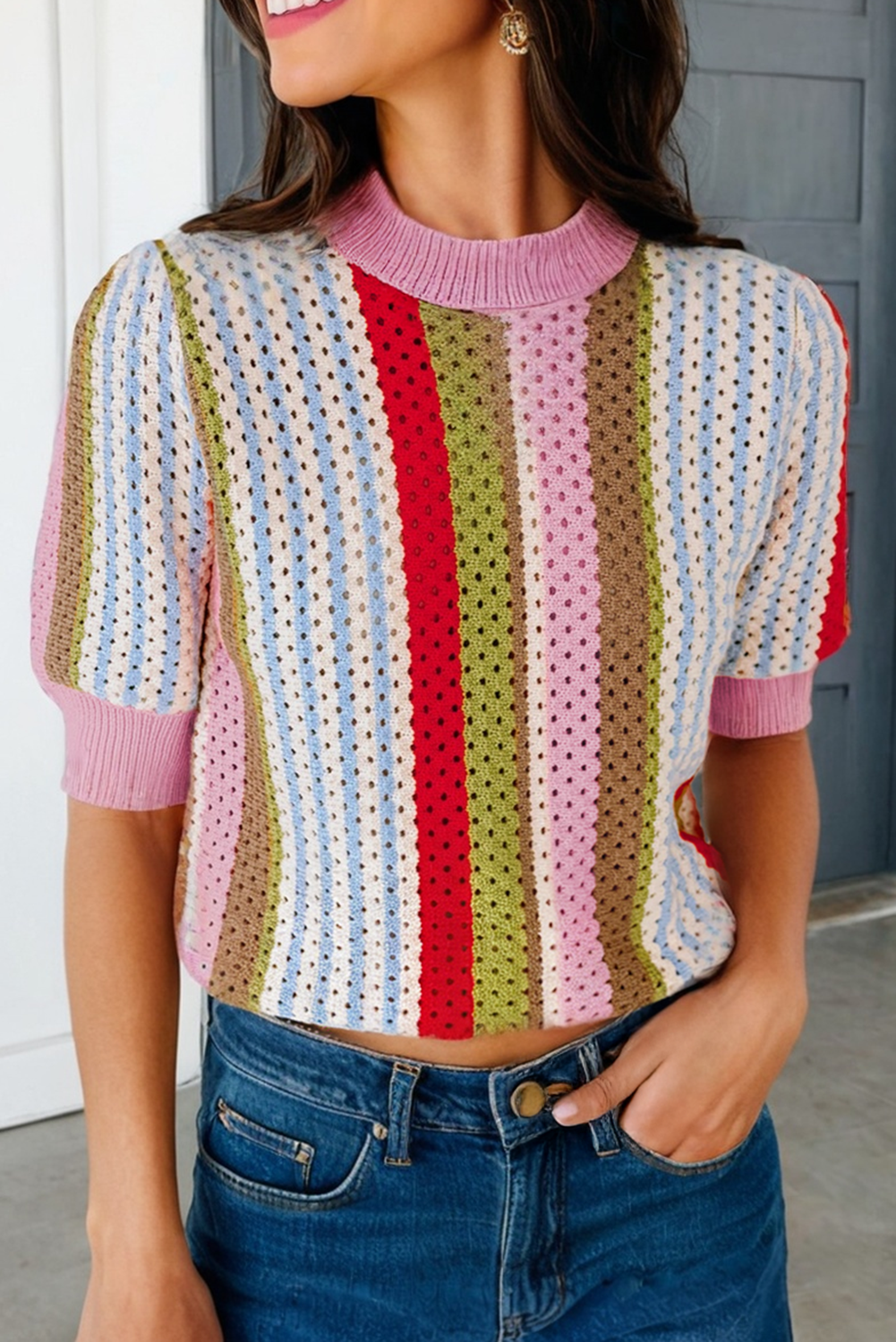 * Style No.: E14993SW A statement knit designed to turn heads, this pink cherry sweater top blends playful charm with chic versatility. Featuring a soft metallic sweater knit, long sleeves, and striking contrast red bows, it’s the perfect mix of feminine and bold. The fitted silhouette makes it easy to style for holiday gatherings, night outs, or even school-girl inspired looks, while the stretchy knit ensures comfort all day. Pair with plaid minis for a preppy twist, or high-waisted trousers for an elevated evening outfit. A true holiday-ready must-have that transitions seamlessly into year-round standout moments. Features - Long sleeves - Metallic sweater knit - Contrast bow - Stretchy Size + Fit Model is 5'9" and wearing a size Small Please refer to our size chart.