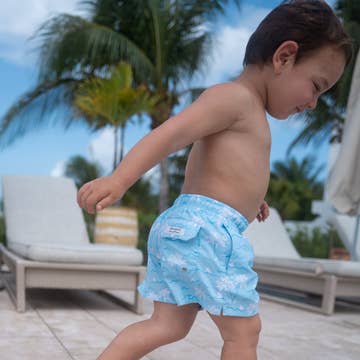 Our new swim trunks in our Manatee print are designed for the most comfortable fun at the beach or pool providing UV protection, while staying soft and comfy for your little one! * FEATURES: The relaxed waistline with adjustable drawstring on our new swim trunks makes it easy to find a comfortable fit for your little one. With deep mesh pockets, your little one can collect tons of fun things on the beach! * UNIQUE PRINTS: Each piece features an in-house designed stylish print. Our artist designed prints in a variety of trending colors and graphics are what make our garments unique. You won't find our exclusive prints anywhere else! * MOM TESTED: Our luxury fabrics stand up to many washes and are loved by our mamas.