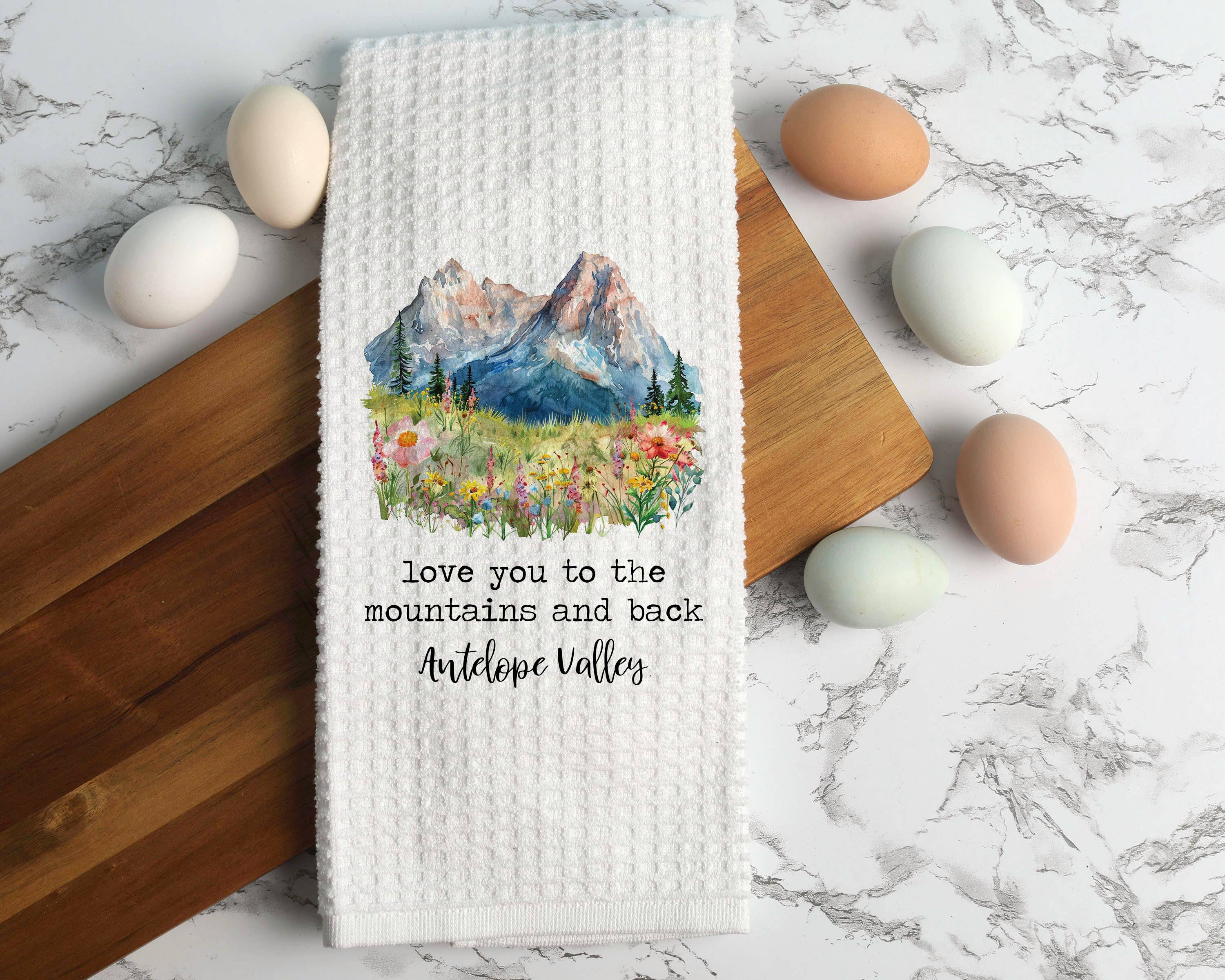 This mountain town towel is the perfect addition to your rustic cabin kitchen decor, and also makes a great housewarming gift. Perfect souvenir for state park or national park vacations. - Measures approximately 16”x 24” - Made of 80% Polyester and 20% Polyamide. - Design is permanently printed - Individually packaged in cellophane sleeve and ready to be gifted - It is called a waffle weave because the towel has raised looped edges on the surface of the towel in the shape like that on a delicious Belgian Waffle. These “pockets'' that are created hold water while the surface of the cloth stays dry making it an exceptional drying towel! The raised looped edges on this lint free towel make it great for all around use, while also being great on glass.