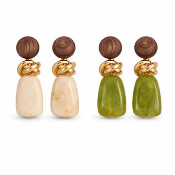 Handmade Polymer Clay earrings, small batch Earrings are made with a combination of clay, mica powder, acrylic paint, and gold leaf. All products are handmade and one of a kind, so patters and colors will vary from the photo examples. All metals user are nickel free, gold plated, and hypoallergenic Austin, TX based, women owned business