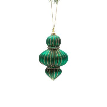 * 7.2 Inches Tall * 3 Inches Wide at the Widest Point * Glass * Mouth Blown * Hand Painted * German Glass * Italian Paint * Colorful Ribbon Attached * Designed in the USA * Made in Ukraine * Gift Box Included This elegant glass Christmas ornament features a unique globe finial shape with a round center and tapered top and bottom. Embellished with sparkling gemstones, intricate glitter swirls, and ornate detailing, it adds a touch of classic holiday charm to any tree. Hand-painted and crafted with old-world artistry, this festive piece reflects light beautifully, creating a luxurious and eye-catching display. Perfect for collectors or anyone looking to elevate their holiday décor. When it’s time to decorate the tree, yours will shine with beautiful Christmas ornaments from BestPysanky. Sumptuously decorated with ornate designs and shimmering glitter, our glass ornament collection lends a luxurious look to your tree. Our collectible ornament was designed in the USA and created with the utmost attention to quality and detail to create a holiday piece that will be treasured for years. The finest artisans in Ukraine hand painted each one, achieving new levels of innovation and artistic integrity in our designs. Using only traditional old world production methods and materials sourced from European countries, they ensure that each ornament is an impressive work of art that will be treasured for generations. Add lots of subtle sparkle to the holiday tree with our set of glass Christmas ornaments.