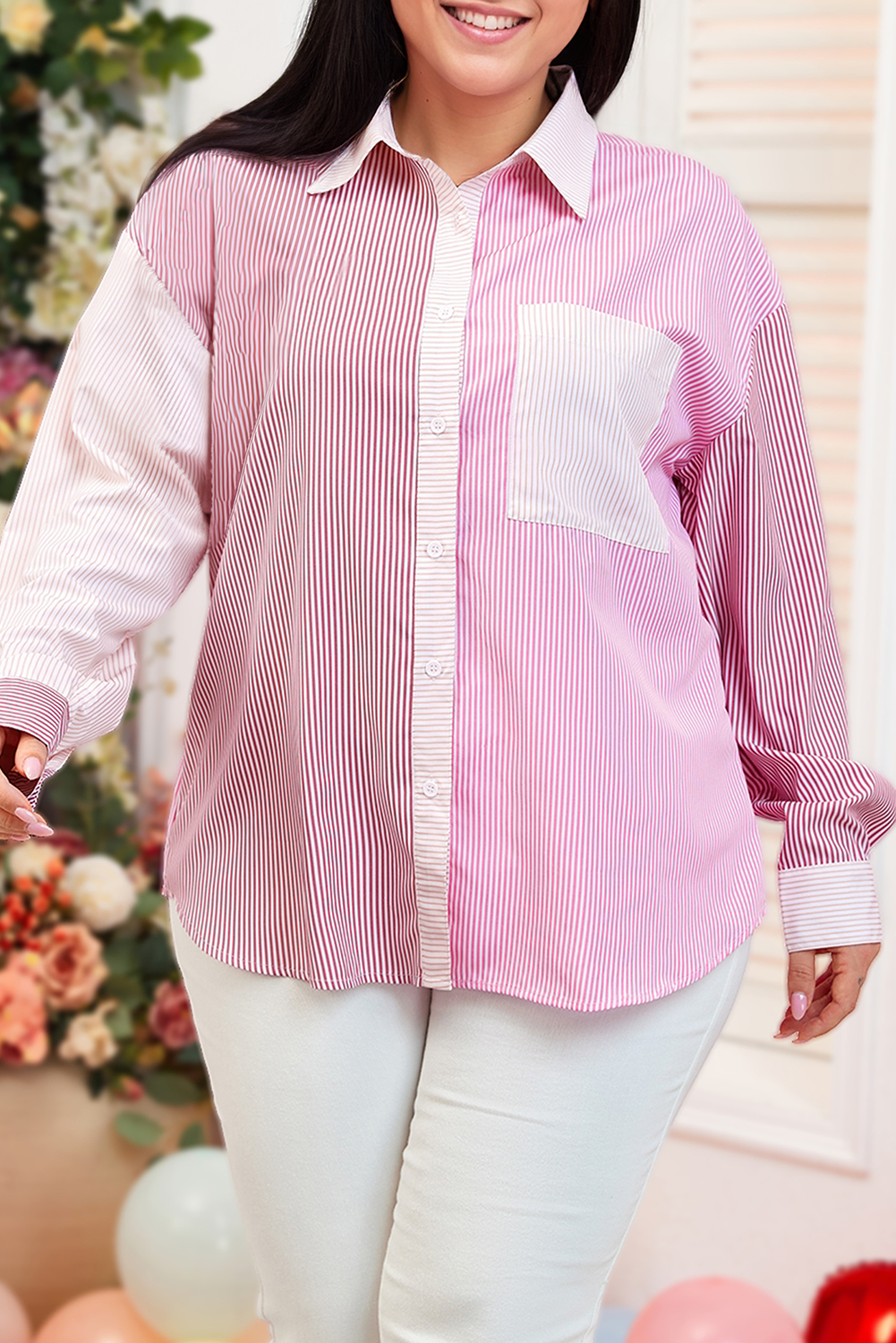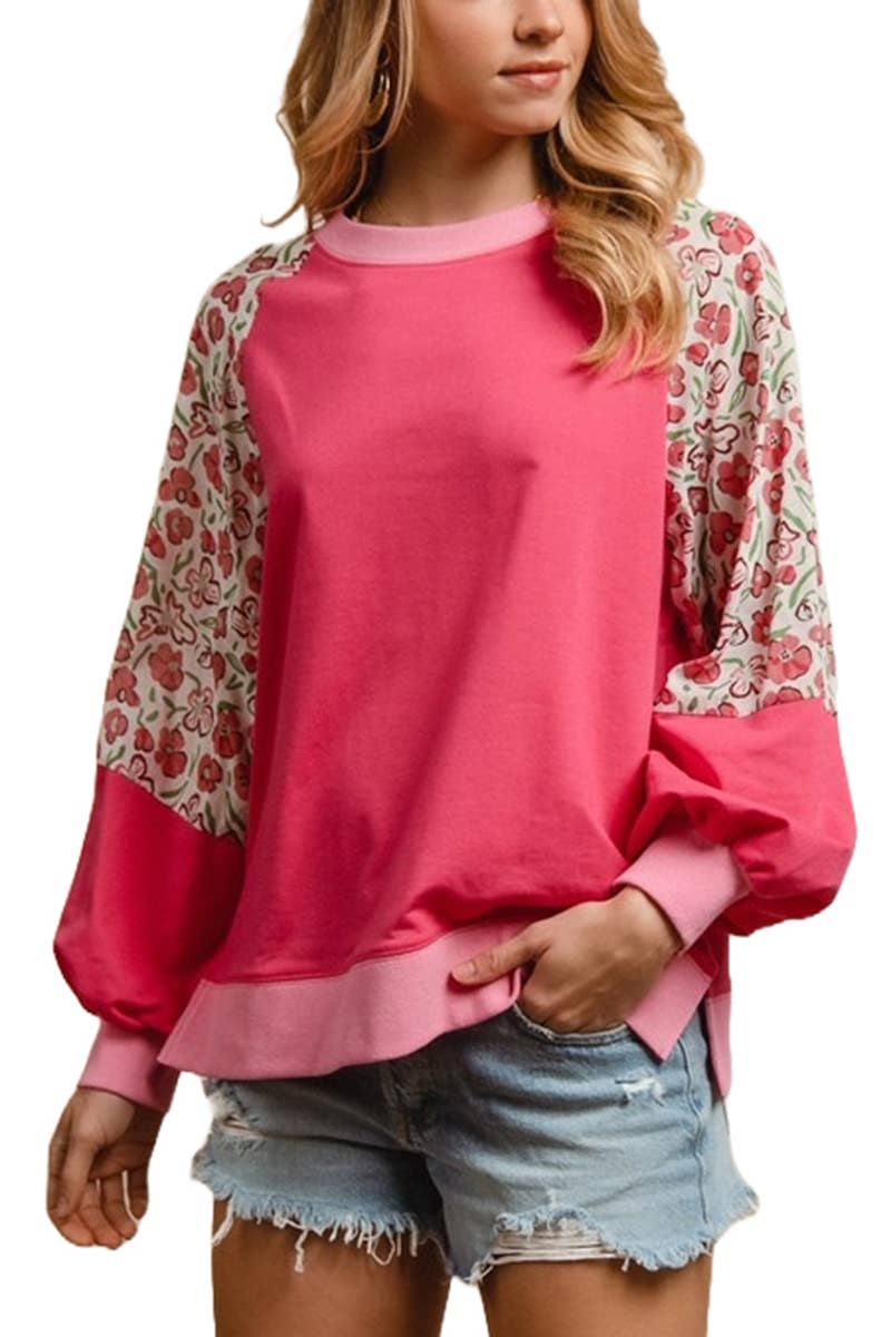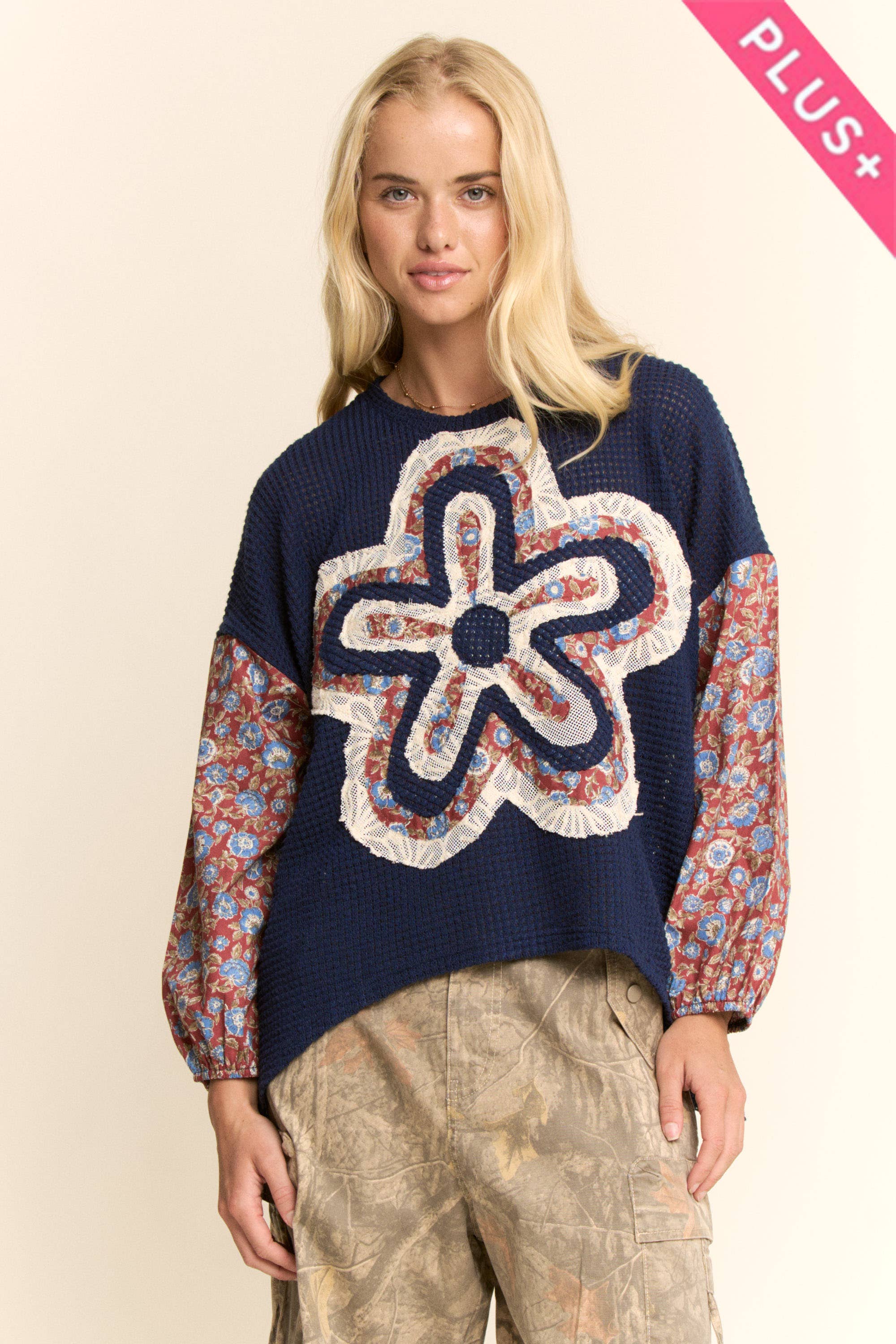 fall 2025 Plus Size Flower Patched Side Slits Crewneck Top (S-4X) Material: 65%Polyester+35%Cotton Size Chart (INCH) Size Bust Hem Shoulder Length S 43.3 44.5 20.1 26.0 M 45.7 46.9 21.3 26.8 L 48.0 49.2 22.4 27.6 XL 51.2 52.4 24.0 28.3 1X 50.8 52.0 23.6 28.0 2X 53.9 55.1 25.2 28.5 3X 57.1 58.3 26.8 29.1 4X 60.2 61.4 28.3 29.7 Note: Our products currently come with size and care labels only. If you need branded labels, please contact us for custom options!